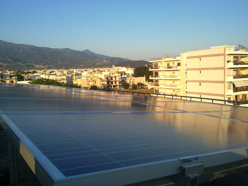 Δώμα συνολικού εμβαδού 180 τ.μ. Λόγω παρουσίας σκιάσεων σε μικρή έκταση του δώματος καθώς και περιμετρικού στηθαίου και κιγκλιδώματος, εγκαταστάθηκαν βάσεις με υπερύψωση 1 μέτρου. Τα φωτοβολταϊκά στοιχεία τοποθετήθηκαν σε κλίση 10 μοιρών.